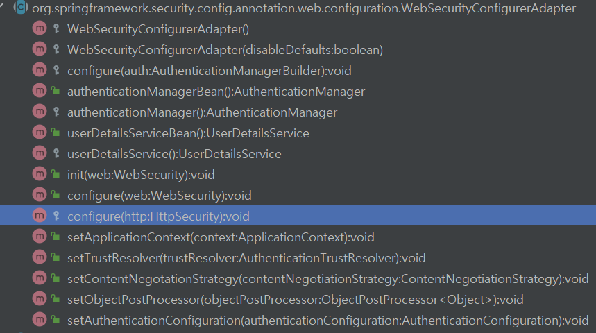 WebSecurityConfigurerAdapter엔 다양한 메서드들이 있다.
