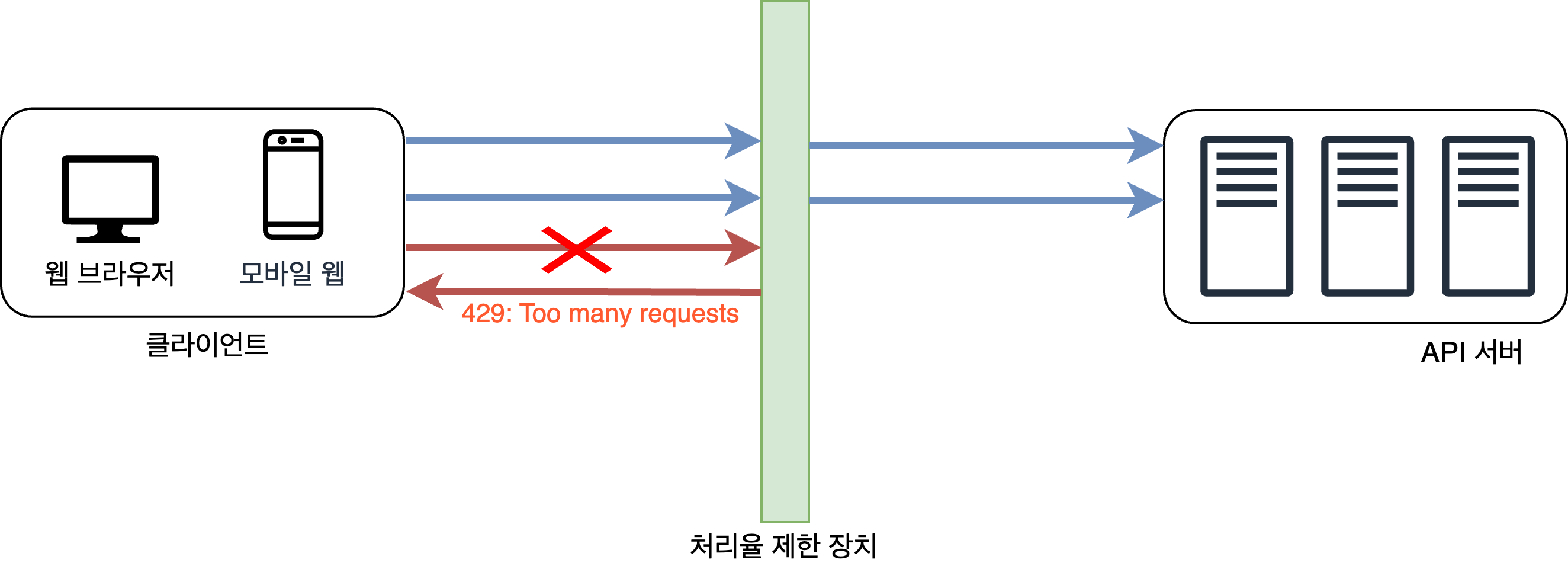 HTTP를 예로 들면 이 장치는 특정 기간 내에 전송되는 클라이언트의 요청 횟수를 제한한다.
